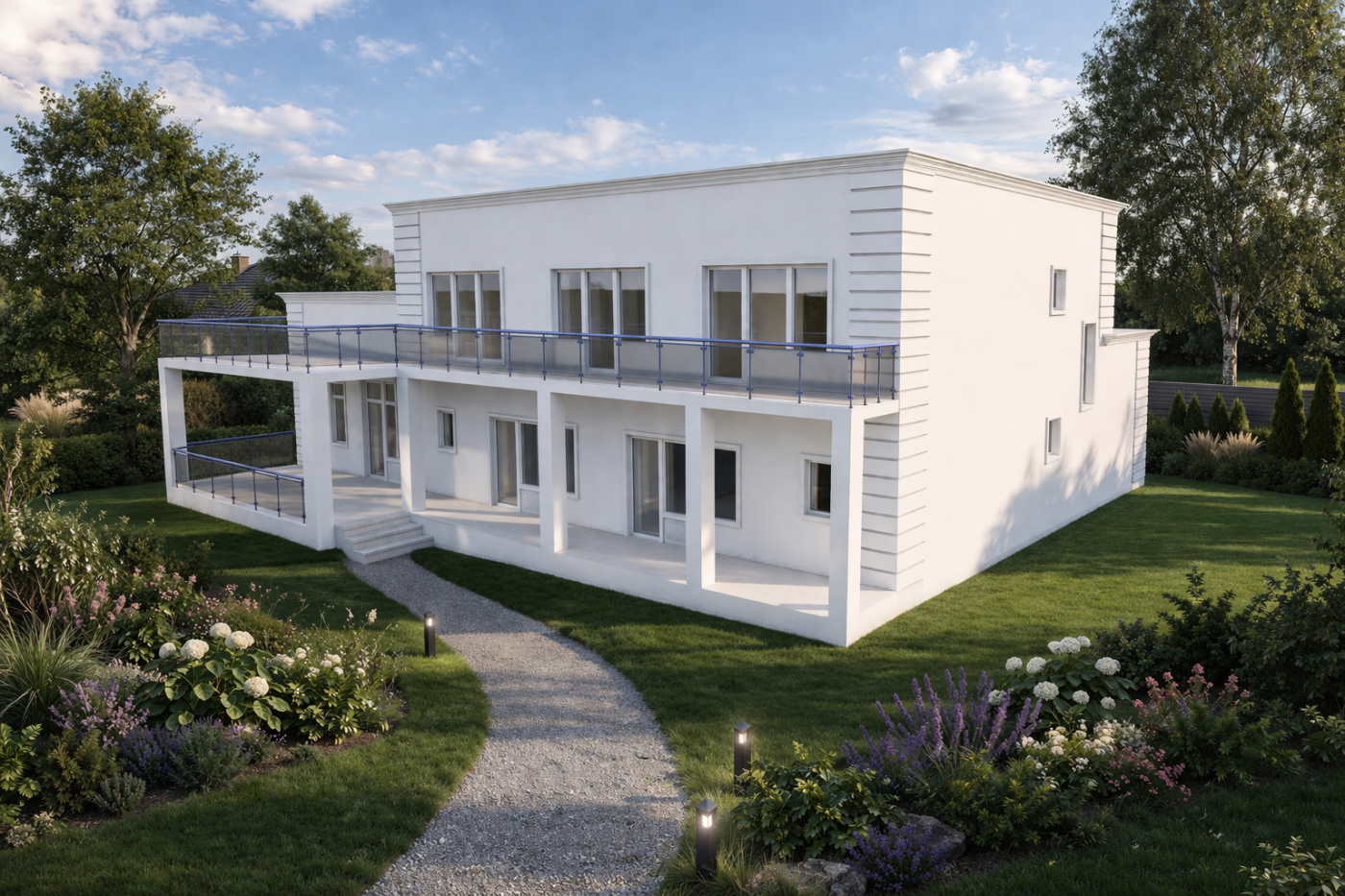 Разрабатываем проекты современных домов с плоской кровлей, большими проёмами, лаконичной архитектурой и сложной композицией объёмов. Такой проект требует более точной проработки, чем обычный коттедж, особенно по конструктиву и узлам.